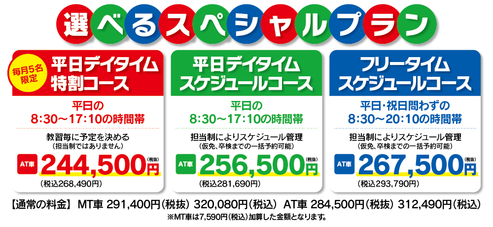 - 平日、祝日問わずの8:30~20:10のすべての時間帯で教習