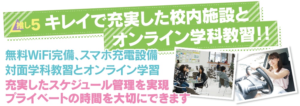 キレイで充実した校内施設とオンライン学科教習!!