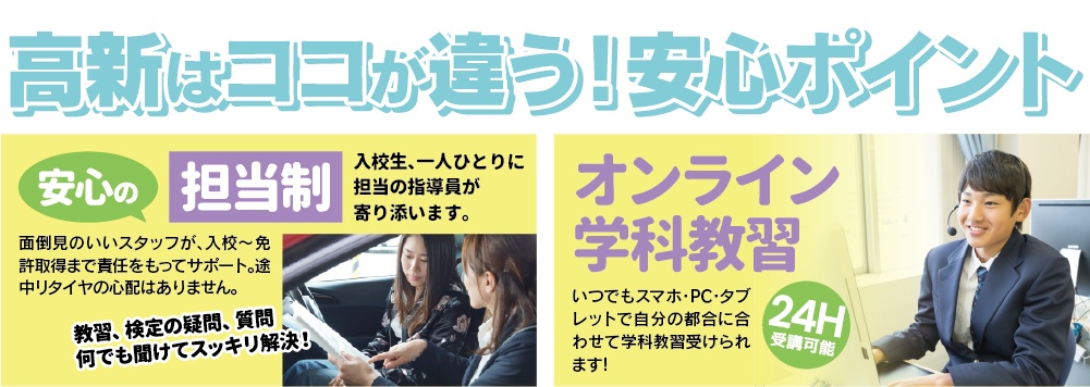 安心して高新自動車学校におまかせ下さい。